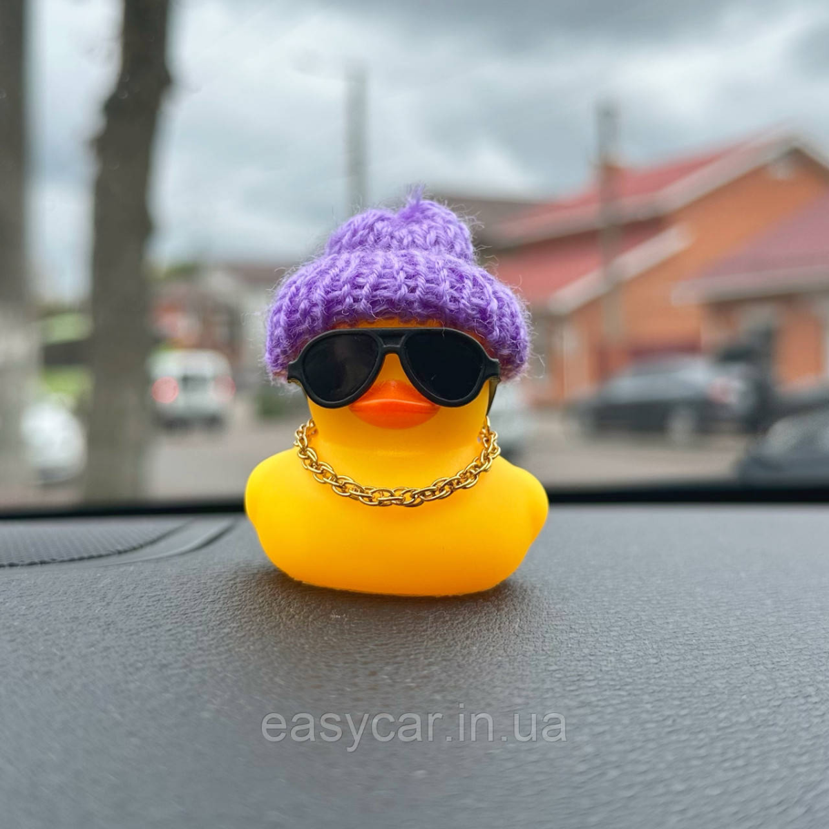 Качка декоративна Жовта у фіолетовій шапочці Дана декоративна качка з набором стильних аксесуарів може стати чудовим подарунком як для автолюбителів, так і для будь-яких інших людей. Вона не тільки стане класним декором для Вашого авто, але й додасть йому індивідуальності. Качка декоративна та може бути приклеєна на різні поверхні, що робить її універсальним варіантом для оформлення будь-якого інтер“єру або екстер“єру. Комплектація: качка ланцюжок шапочка окуляри липучка двостороння