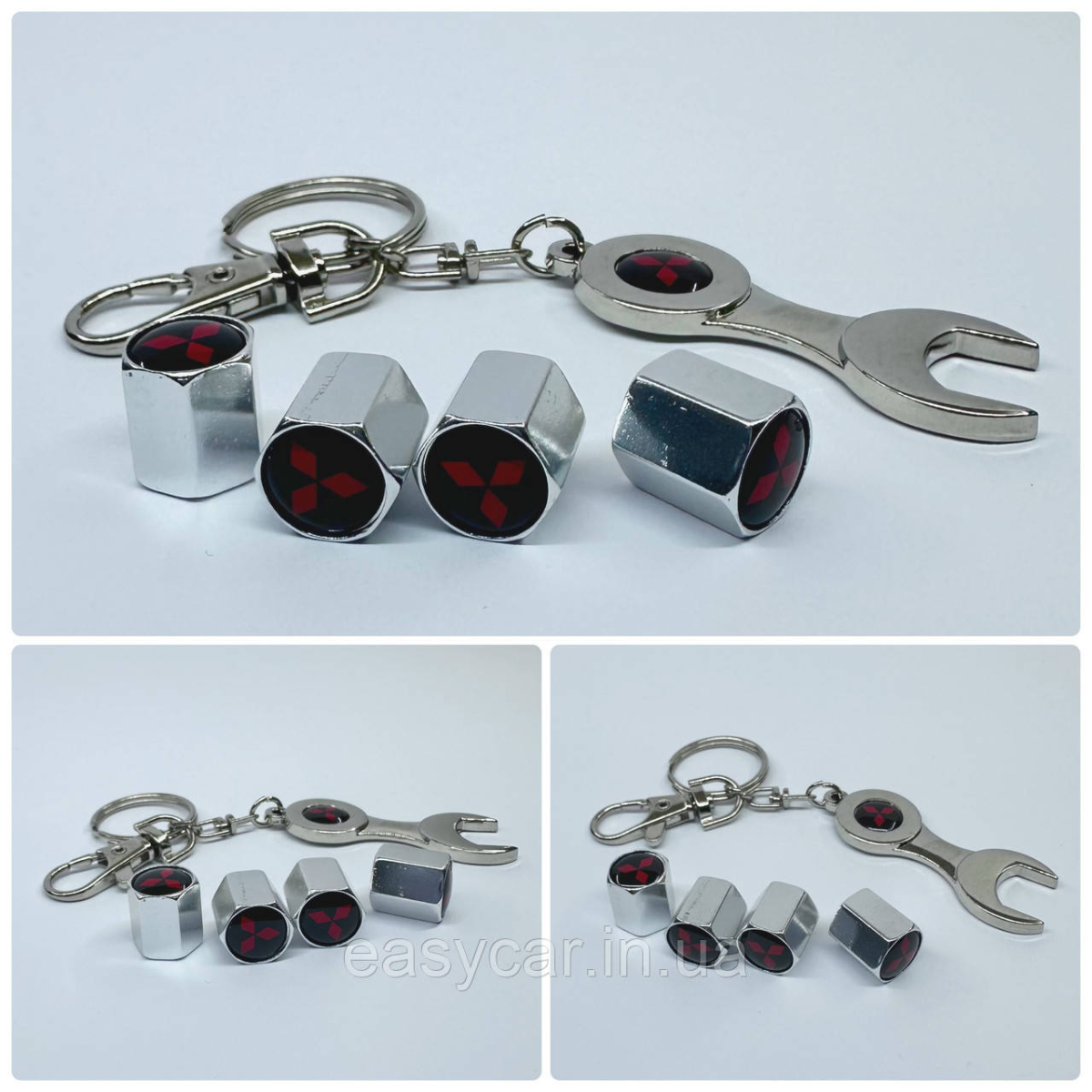 Захисні ковпачки на ніпеля Mitsubishi + ключик-брелок у подарунок! Колір хром