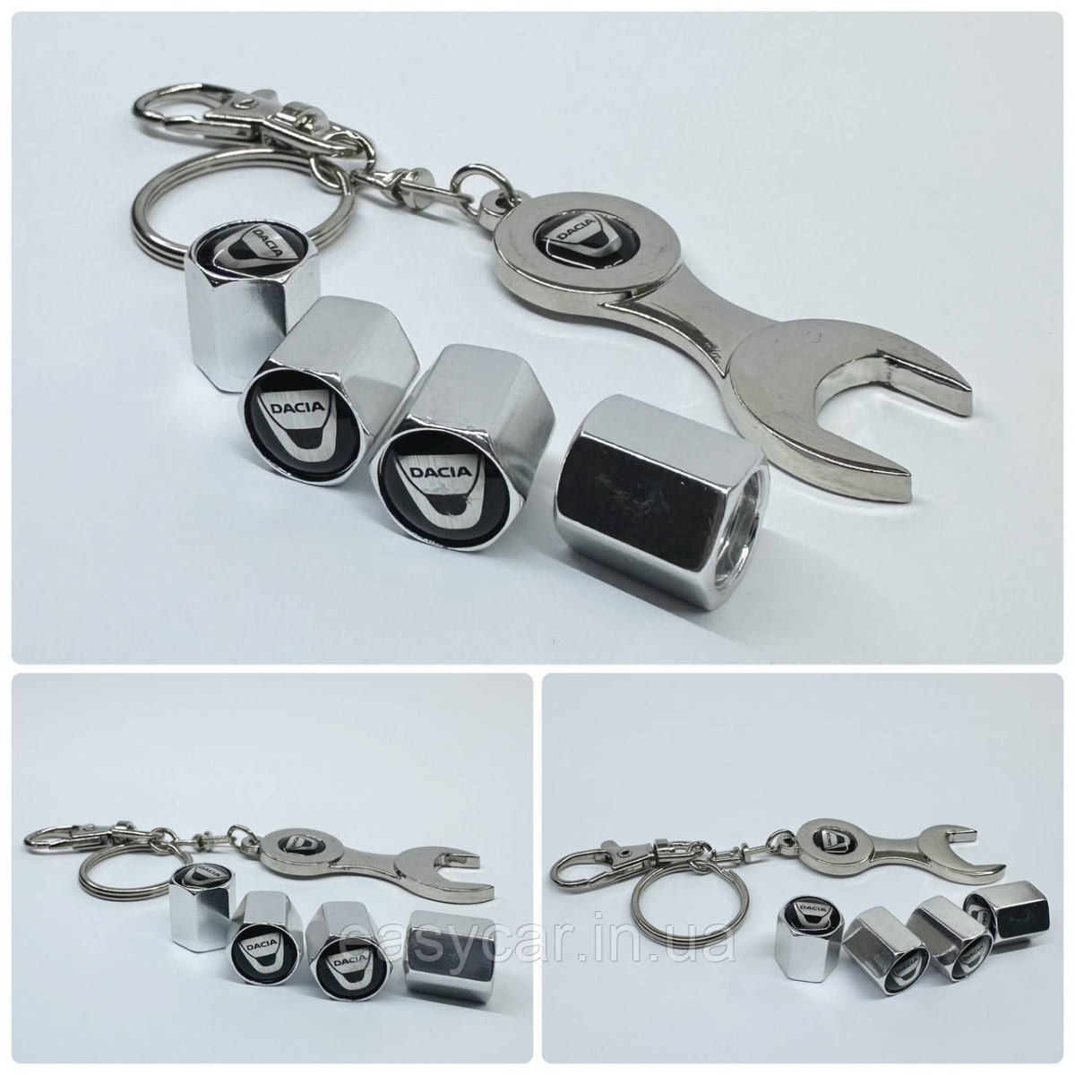 Захисні ковпачки на ніпеля Dacia + ключик-брелок у подарунок! Колір хром