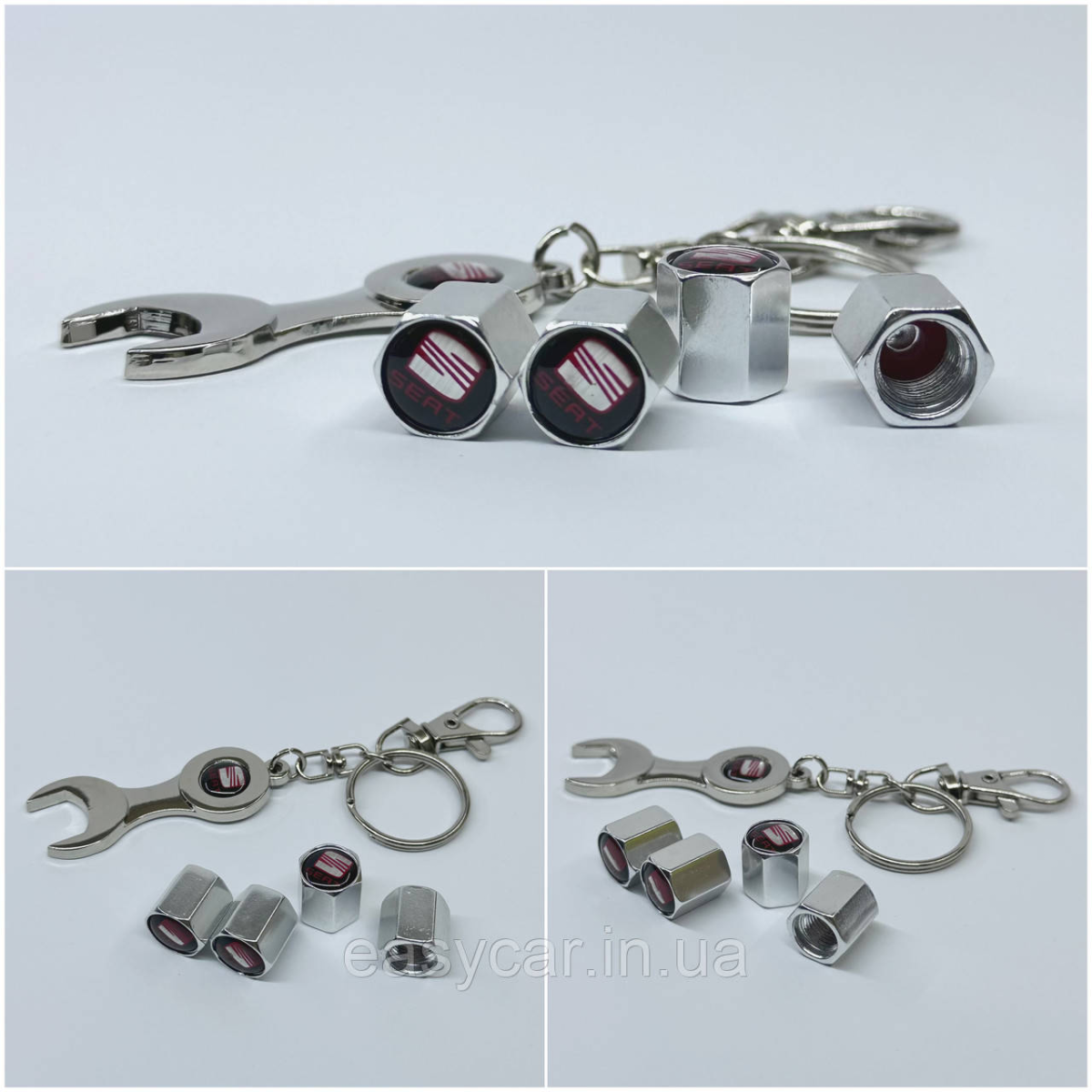 Захисні ковпачки на ніпеля Seat + ключик-брелок у подарунок! Колір хром