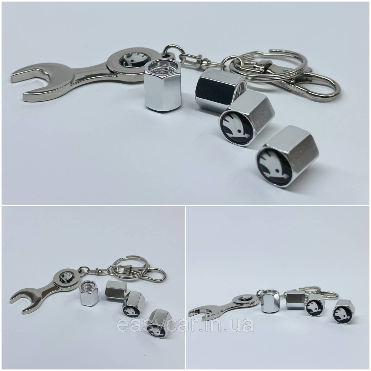 Захисні ковпачки на ніпеля Skoda + ключик-брелок у подарунок! Колір хром
