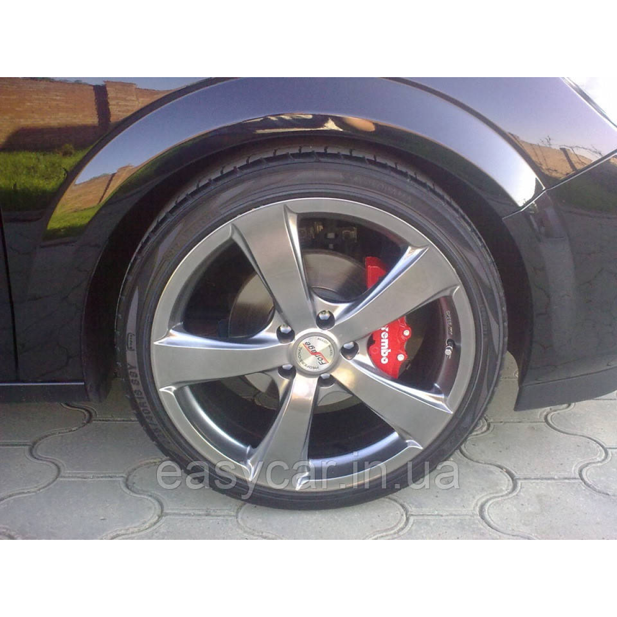 Універсальні декоративні накладки на супорті з маркуванням brembo, що схожі на оригінальні супорти brembo. Опис і переваги товару. Виготовлені з термостійкого ABS пластику завтовшки приблизно 2,5 мм. Мають алюмінієві елементи, що схожі на гальмівні трубки. Правильна та складна форма накладки (подібна до зовнішнього вигляду оригінальних супортів brembo). Стійкий до різкого та інтенсивного гальмування, що викликає нагрівання супорту. Розраховані для встановлення на супорти автомобілів з радіусом диска від 19-го до 21го(R19-R21). Фотографії в оголошенні оригінальні! В наявності червоні Розміри: Передні — 275x80x60 мм (зовнішній), 250х60х45 мм (посадковий). Задні — 245x69x42 мм (зовнішній), 225х55х37 мм (посадковий). Комплект складається: Накладки передні — 2 шт. Накладки задні — 2 шт. Кріпити рекомендуємо термостійкий герметик (до комплекту не входить, але є можливість купівлі в нас). Також бажано заміряти розміри супортів перед замовленням, оскільки накладки мають тільки зазначені розміри та щоб бути впевненими в тому, що все підійде!!