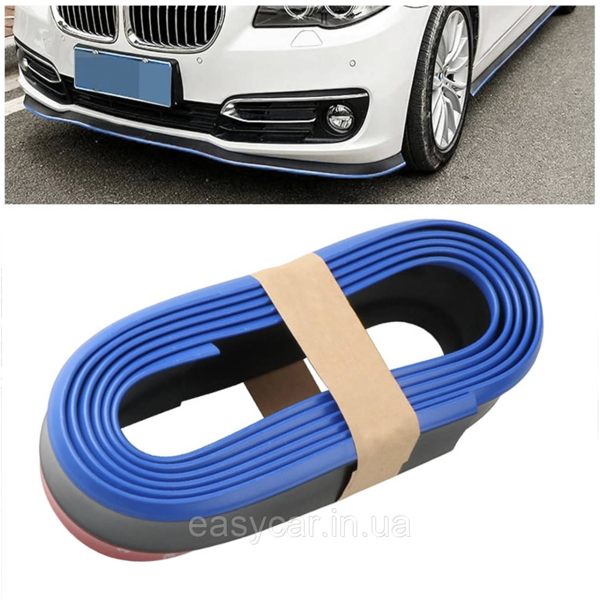 Універсальна губа бампера 2,5 м Чорна з СИНІМ кантом