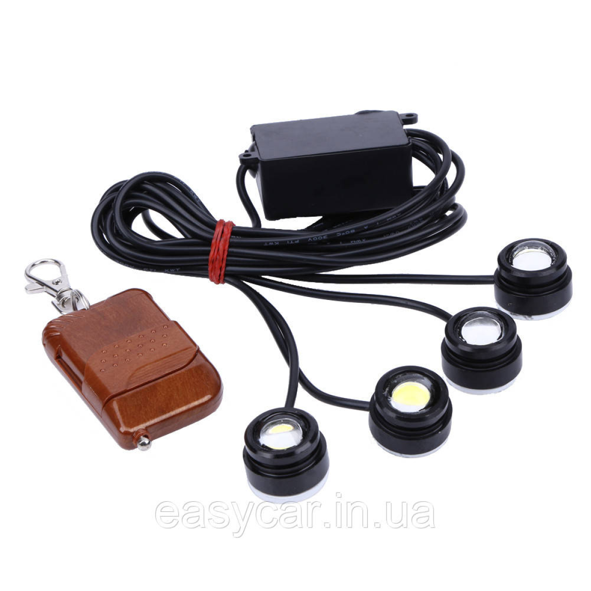 Денні ходові вогні-строби ДХО, стробоскоп 2 в 1 на 4 діоди 16 РЕЖИМІВ СТРОБОСКОПІВ