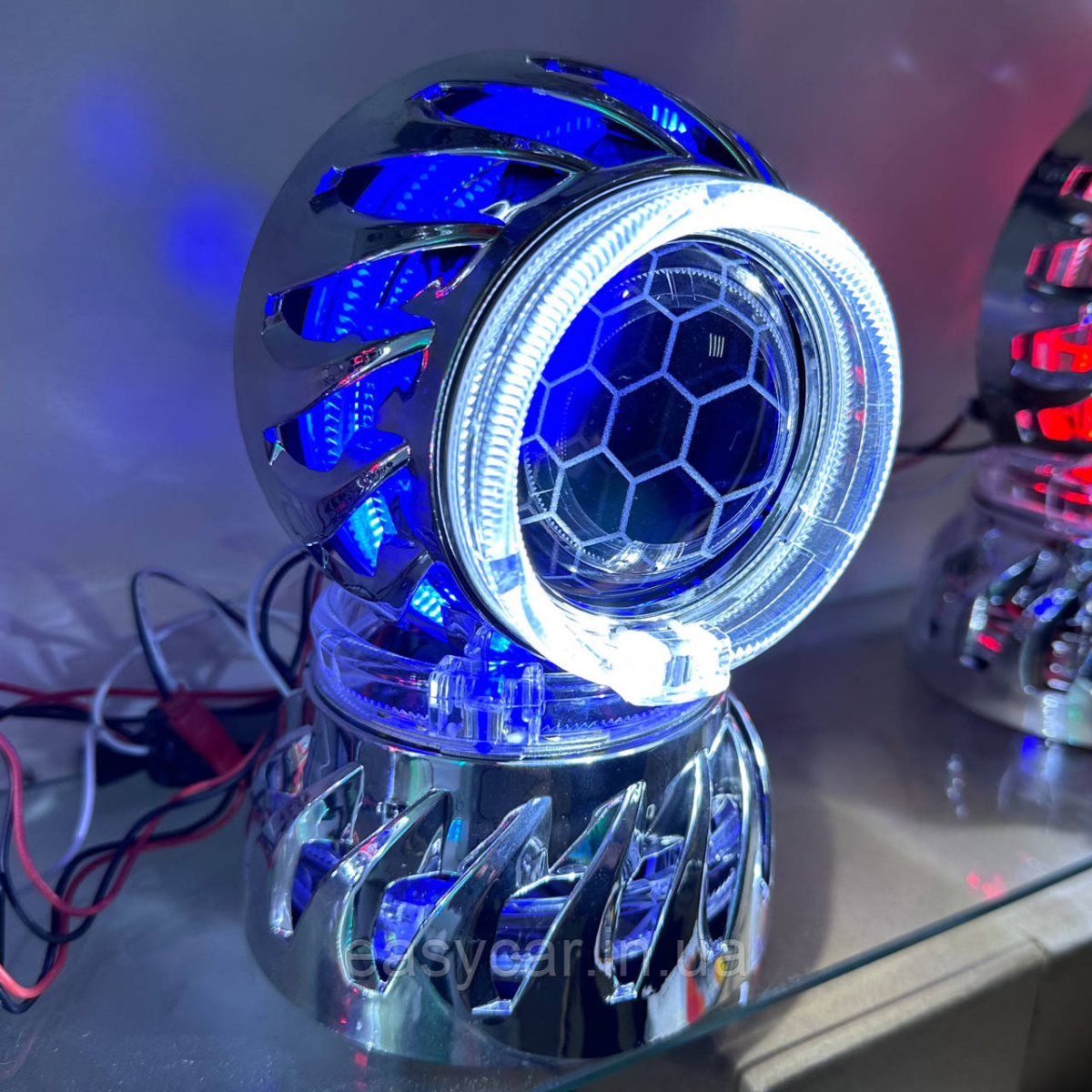 Комплект Бі-ксенонових лінз 2,5“ (64 mm) H1. З ангельськими оченятами БІЛІ + СИНІ