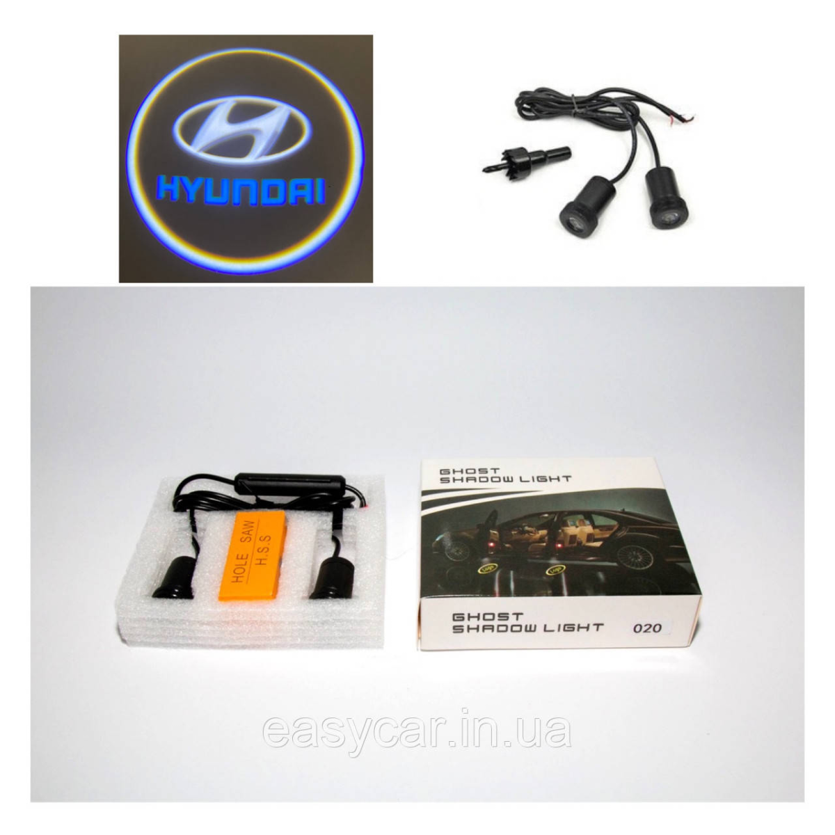 Логотип підсвітка дверей Хюндай door logo Hyundai BLUE