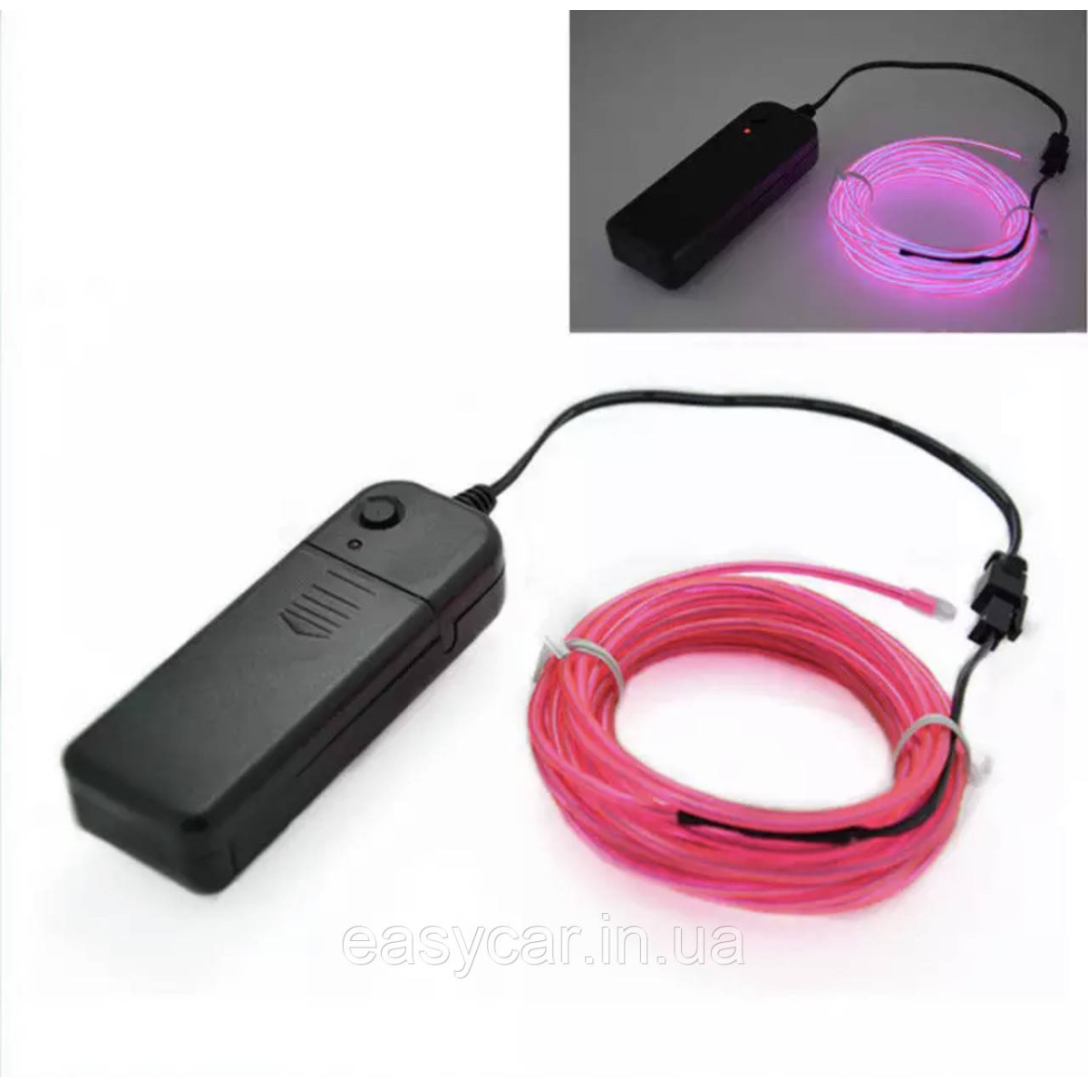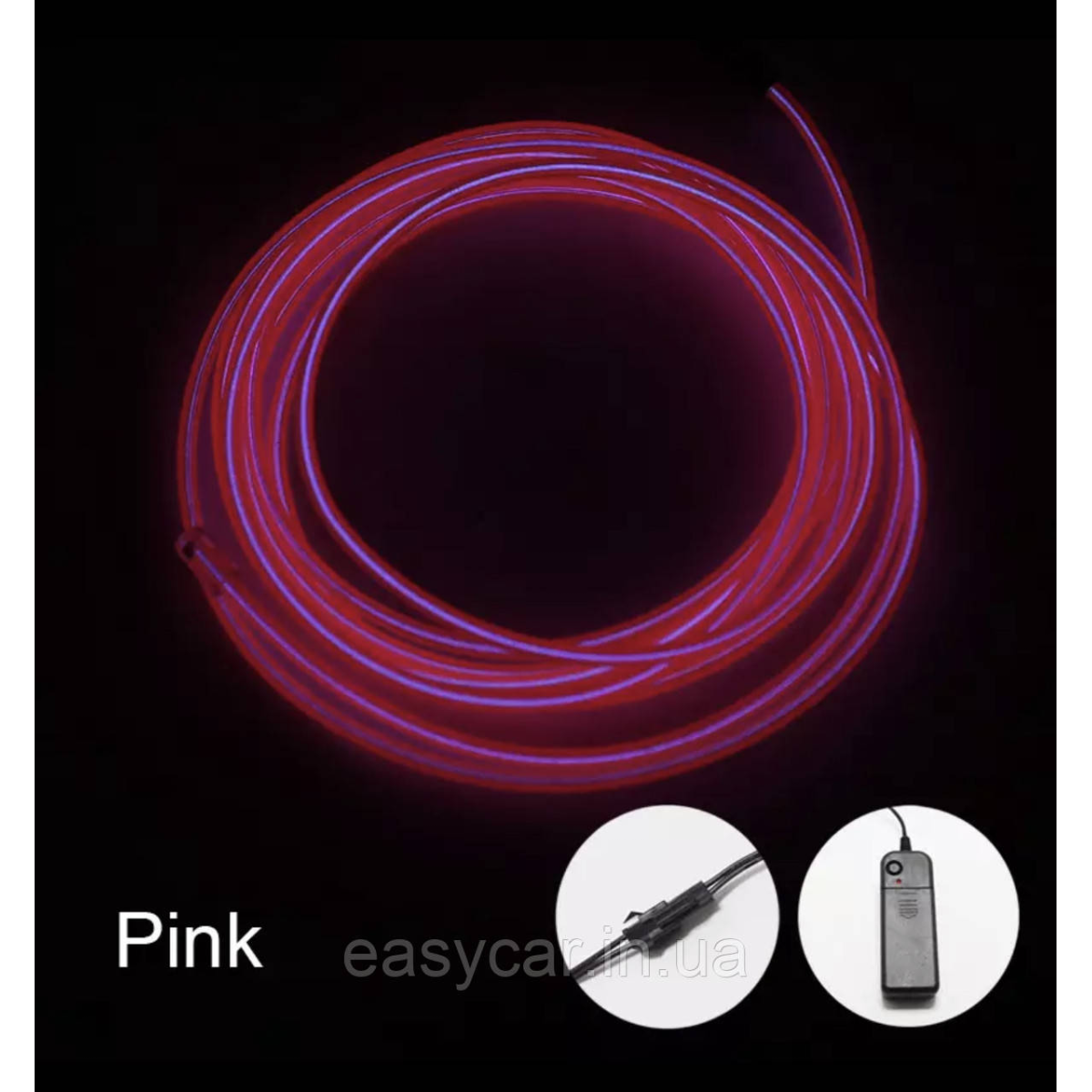 “Холодний неон“ круглий 2,2 мм товщина РОЗОВИЙ 1 м + інвертор від батарейок