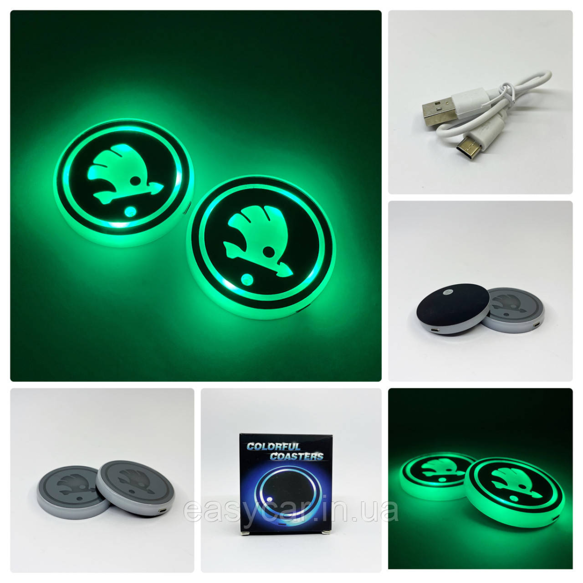Підсвітка в підсклянник із логотипом SKODA з датчиком світла на акумуляторі