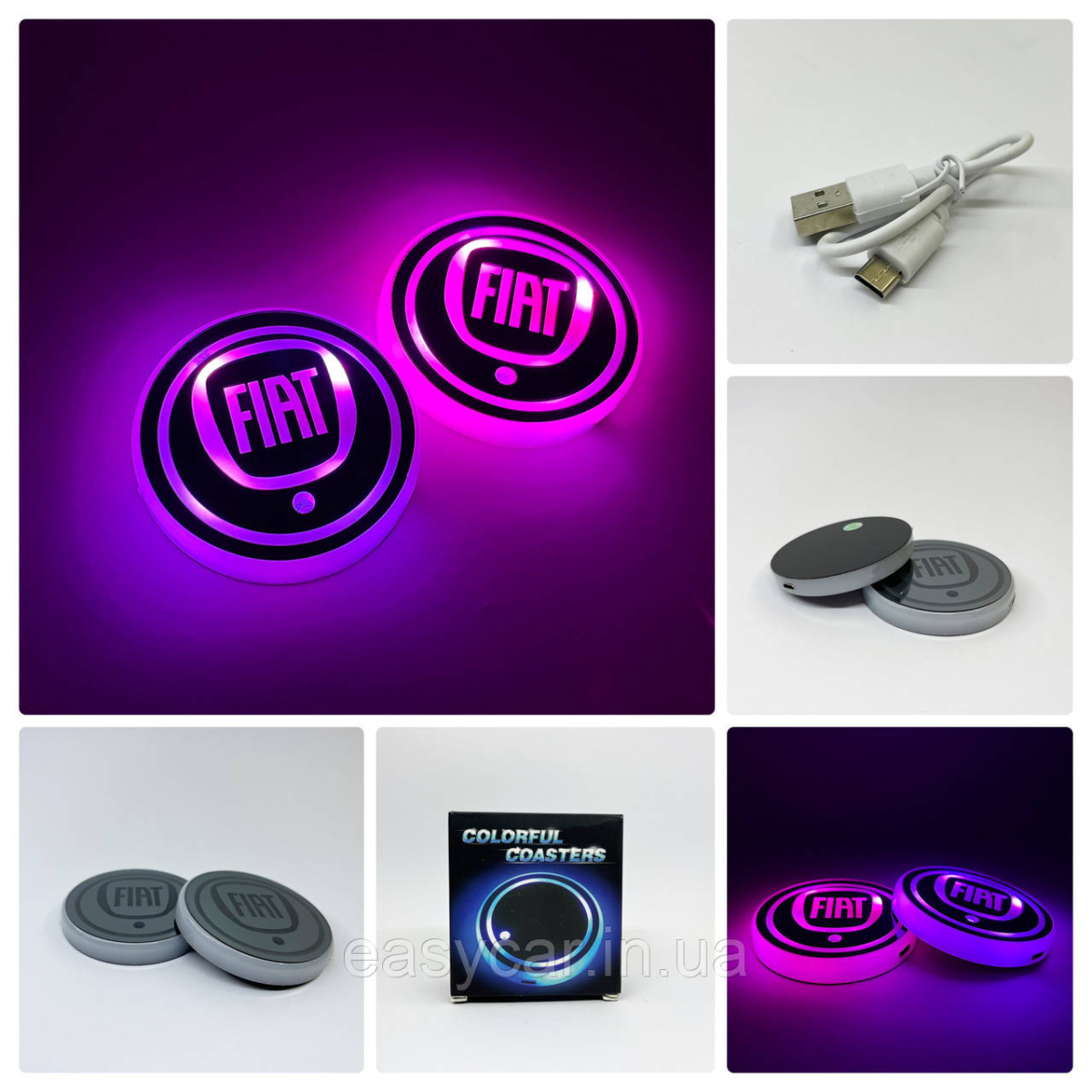 Підсвітка в підсклянник із логотипом FIAT з датчиком світла на акумуляторі