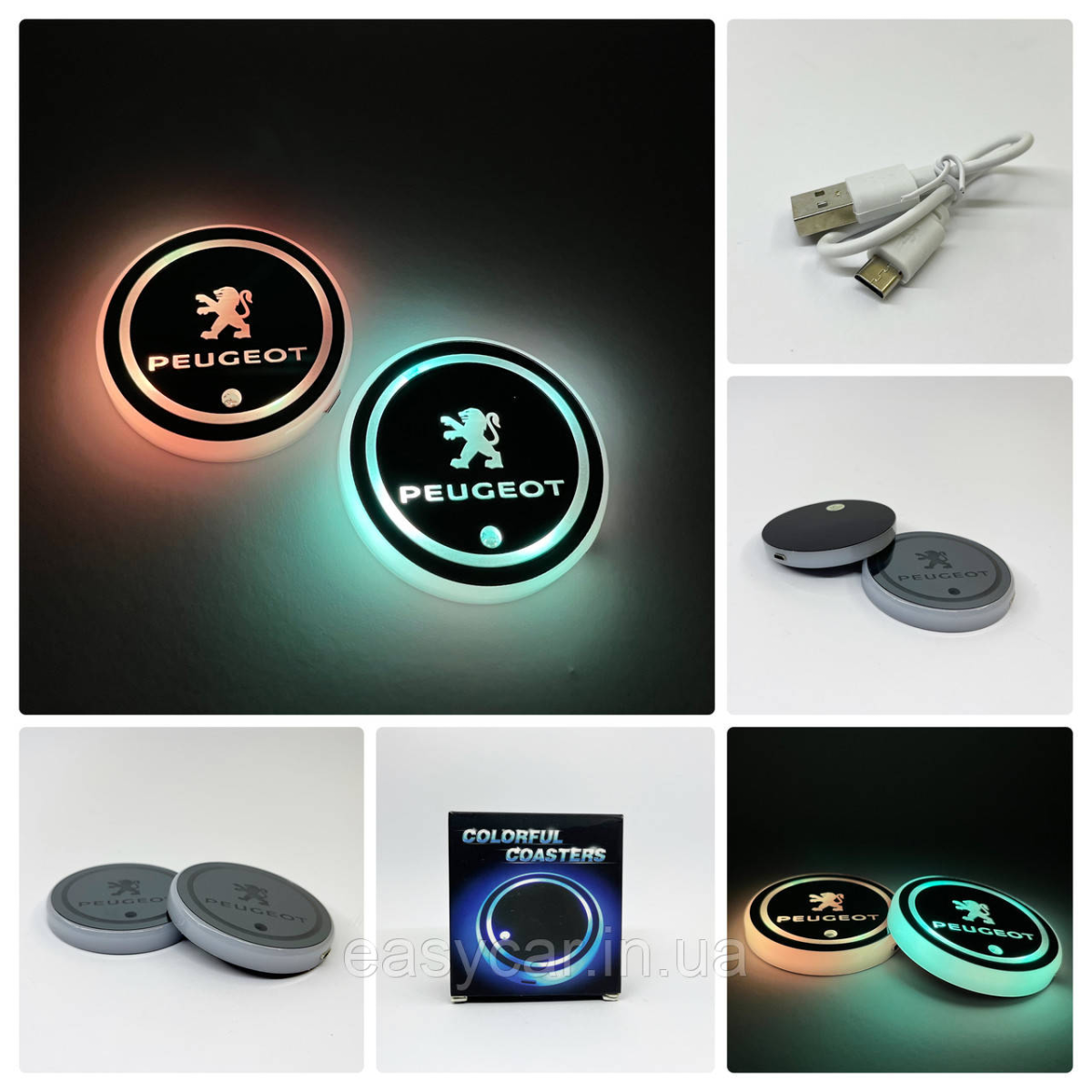 Підсвітка в підсклянник із логотипом PEUGEOT з датчиком світла на акумуляторі
