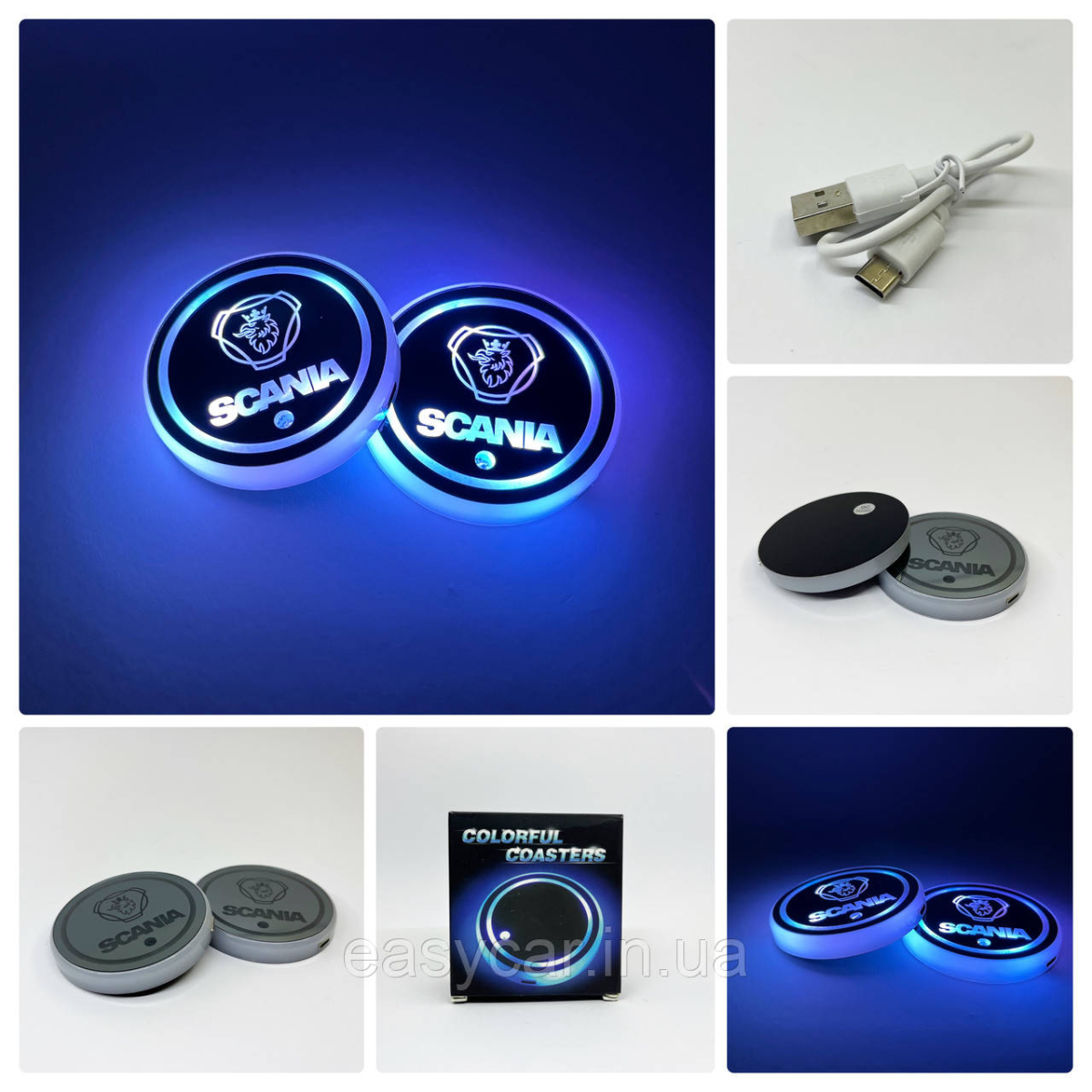 Підсвітка в підсклянник із логотипом SCANIA з датчиком світла на акумуляторі
