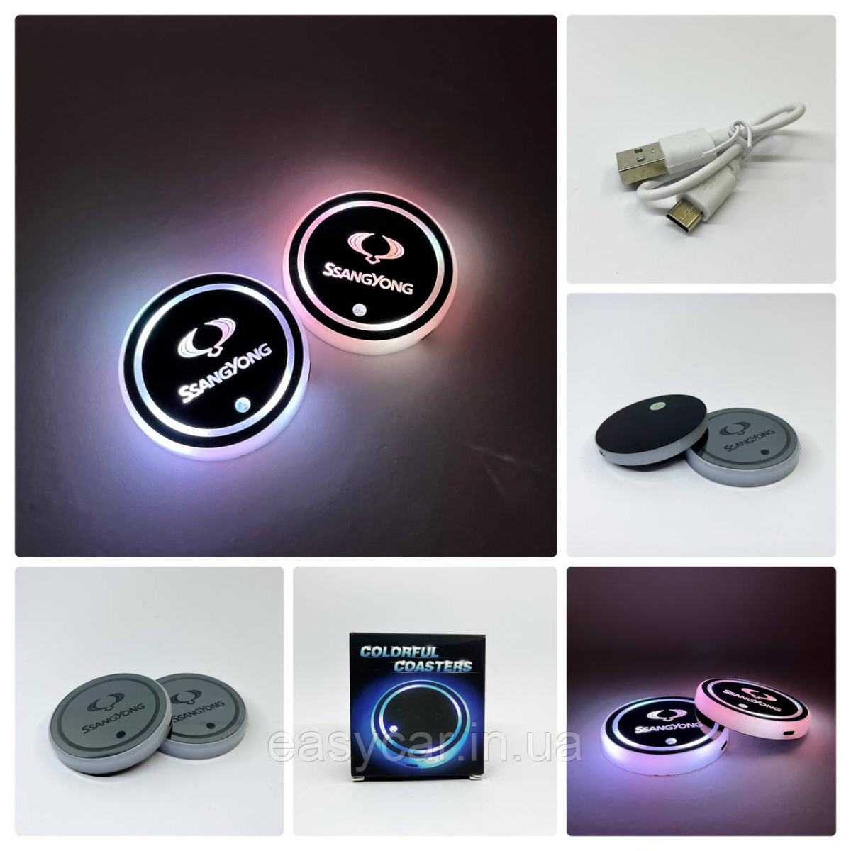 Підсвітка в підсклянник із логотипом SSANG YONG з датчиком світла на акумуляторі