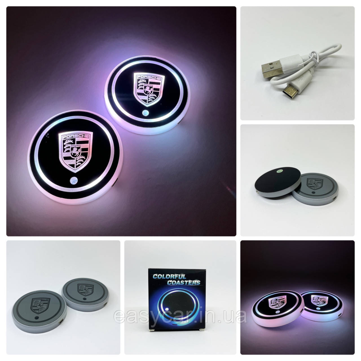 Підсвітка в підсклянник із логотипом PORSCHE з датчиком світла на акумуляторі