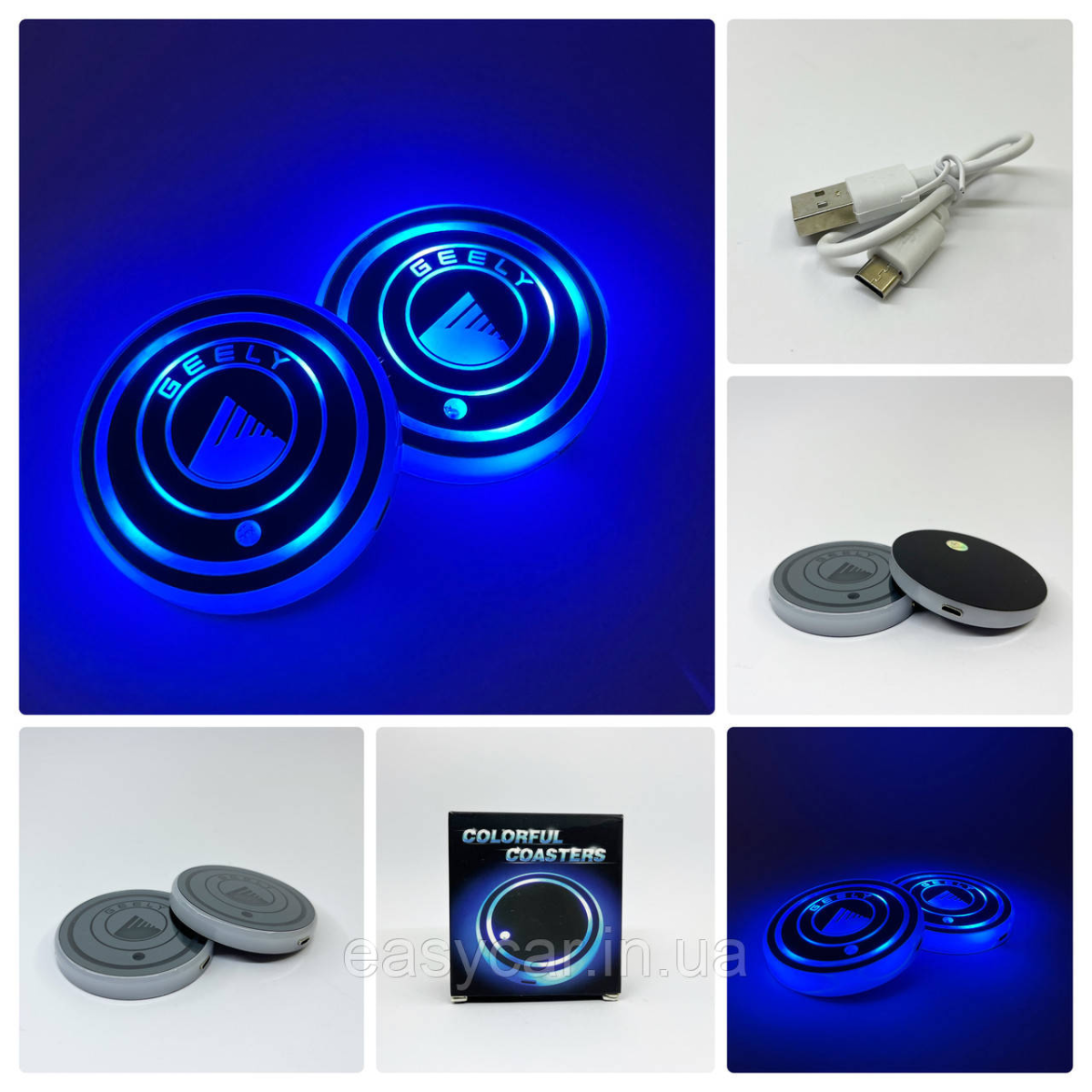 Підсвітка в підсклянник із логотипом GEELY з датчиком світла на акумуляторі