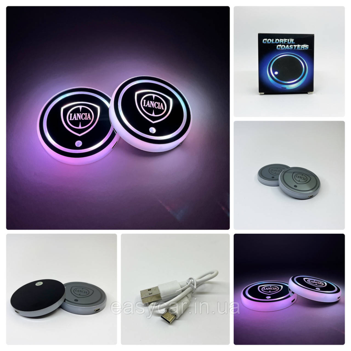 Підсвітка в підсклянник із логотипом LANCIA з датчиком світла на акумуляторі
