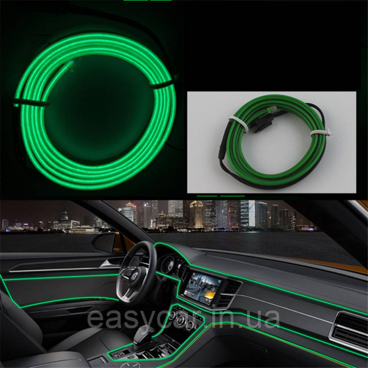 Підсвітка панелі приладів “Холодний неон“ з кантом ЗЕЛЕНИЙ 3 м + інвертор