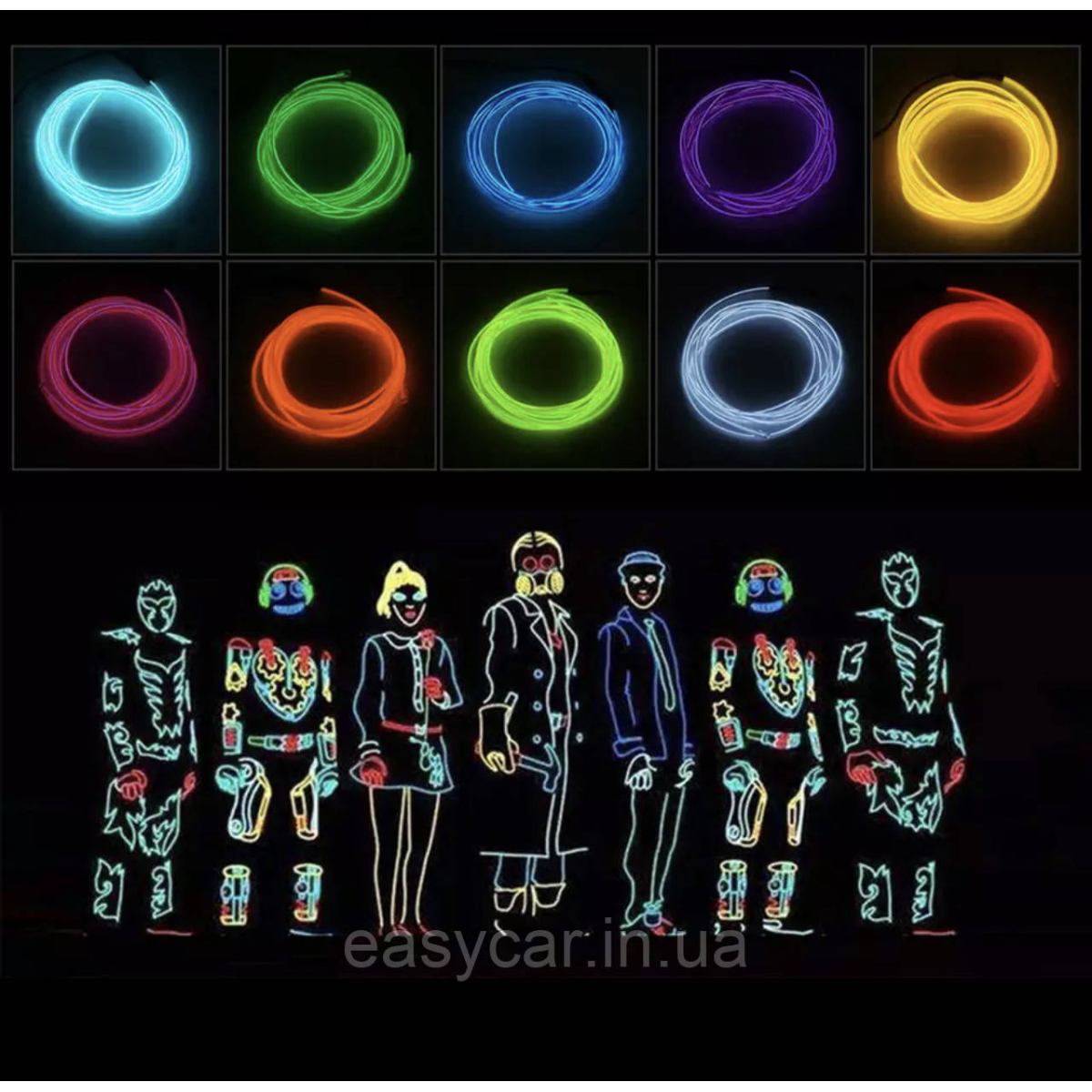 “Холодний неон“ круглий 2,2 мм товщина СИНІЙ 3 м + інвертор від батарейок