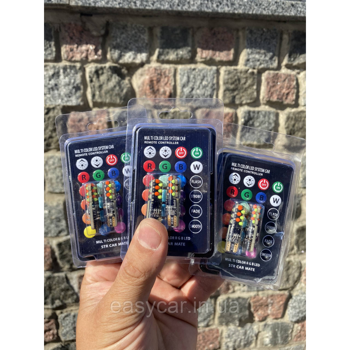 Лампи габаритів RGB LED T10 W5W + пульт