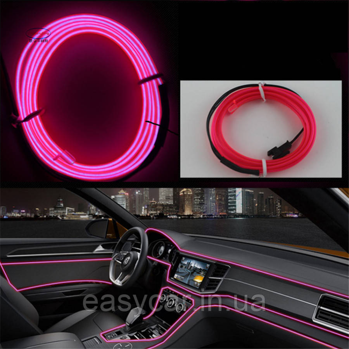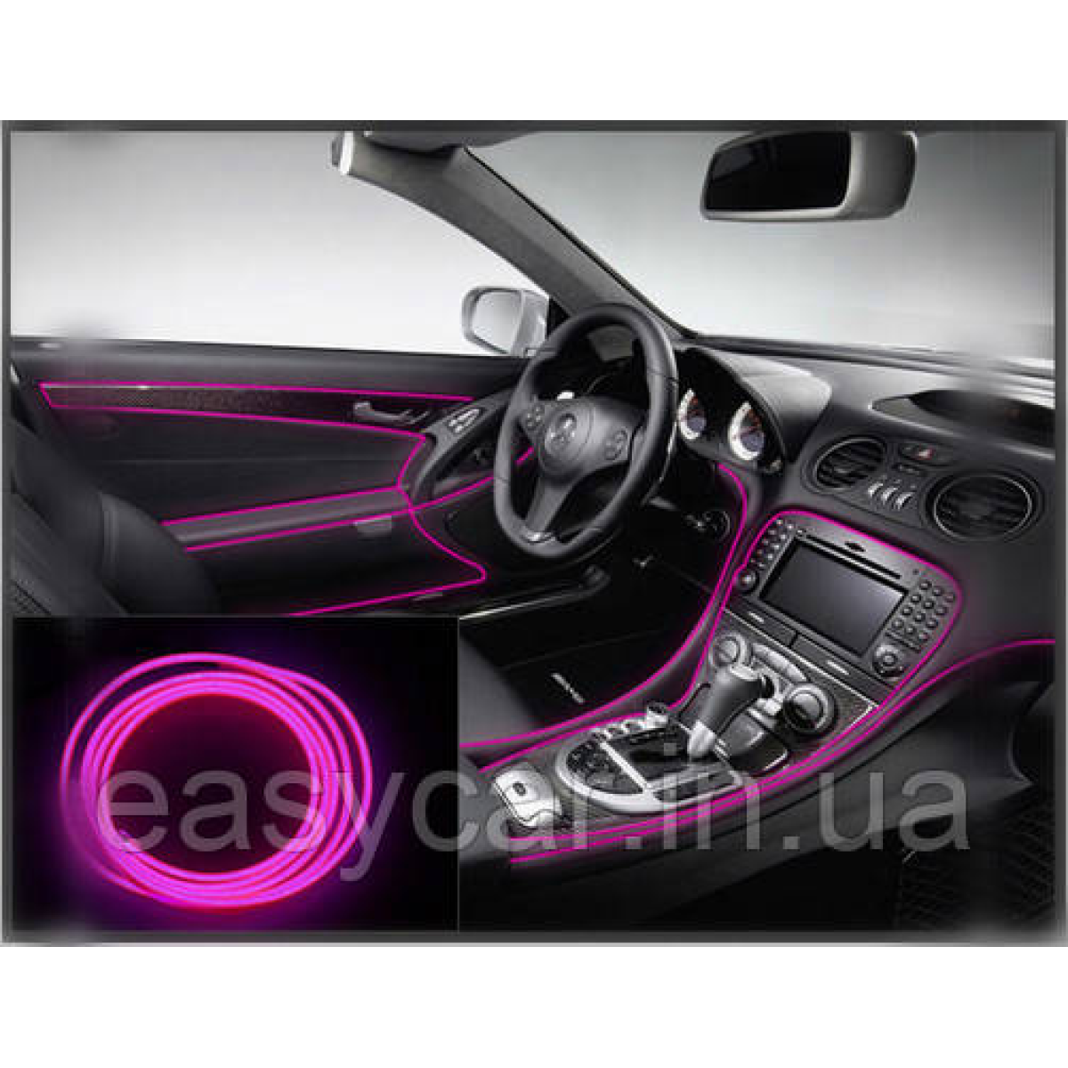 Підсвітка панелі приладів “Холодний неон“ з кантом рожевий 3 м + інвертор